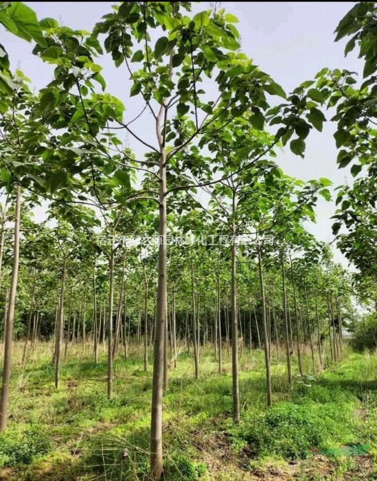 【泡桐栽培技术】泡桐生长非常迅速,十几年树龄的泡桐要比同龄杨树直径大一倍,但生长时间长了,树干会出现中空。由于生长迅速,所以木材材质轻软,容易加工,但也耐酸耐腐,防湿隔热。泡桐育苗方法有插根、播种、留根等,以插根育苗X普遍。苗□地应选用排灌方便、土壤通气良好、地下水位在1.5~2.0米以下的砂壤土和壤土,重茬地不宜。苗木长度以15~20厘米,粗度以1.5~4.0厘米为好。株行距1.0×1.0米或1.0×1.2米。在苗木生长发育过程中加强水肥管理和防治病虫害。
