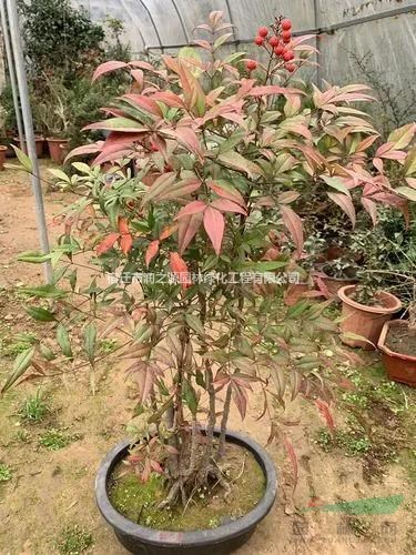 南天竹的形态特征:常绿灌木,高可达2米。干直立,少分枝,幼枝常为红色。叶互生,二至三回羽状复叶,总叶柄有小节,基部有包茎鞘。小叶椭圆状披针形,先端渐尖,基部楔形,薄革质,表面光滑,背面叶脉隆起,深绿色,全缘,近无柄。6~7月开白色小花,圆锥花序顶生。果圆球状,11月后成熟,鲜红色。内有种子2个,种子扁圆形。南天竹的生长习性:喜半阴,见强光后叶色变红,且不易结果。喜温暖、湿润环境,但能耐低温。喜排水良好的肥沃土壤,在阳光强烈、土壤贫瘠干燥处生长不良。南天竹的繁殖方法:繁殖以播种、分株为主,也可扦插。可于果实成熟时随采随播,也可春播。分株宜在春季萌芽前或秋季进行。扦插以新芽萌动前或夏季新梢停止生长时进行。室内养护要加强通风透光,防止介壳虫发生。