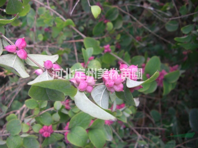 红雪果是一种植物,主要分布于北美及中美洲,株高1米左右,直立,小枝纤细,有毛;叶片长3厘米,革质,卵形深绿色,有毛;花淡粉色,花期6月末至7月末,分蘖多,生长蔓延快,由于当年生枝条可开花,所以在春天修剪枯枝,不影响当年开花结果。
