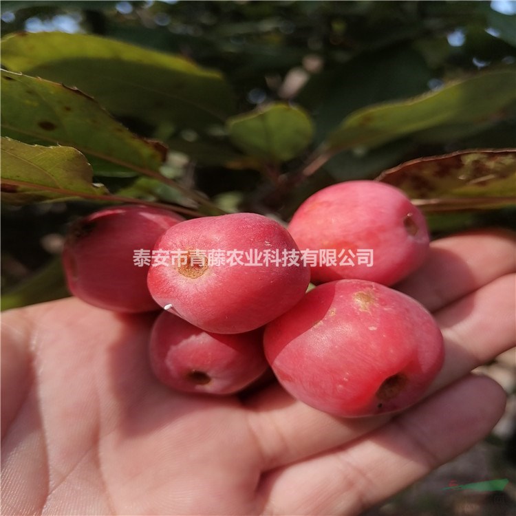 冬红果为蔷薇科、苹果属落叶灌木或小乔木,植株矮小,枝条灰褐色,叶片椭圆形至广椭圆形,绿色,边缘有圆钝的锯齿。伞房花序,花浅粉红色,春季开放。果实椭圆球形,单果重10克至20克,初为绿色,以后逐渐呈黄色,成熟后则为鲜红色,表皮光滑,经冬不落,可持续到第二年的2月至3月才陆续脱落。