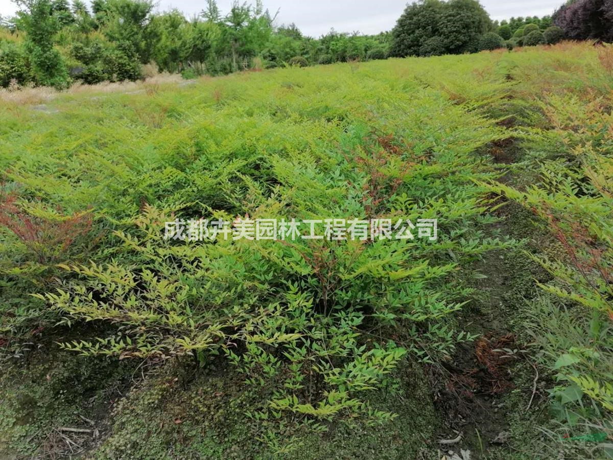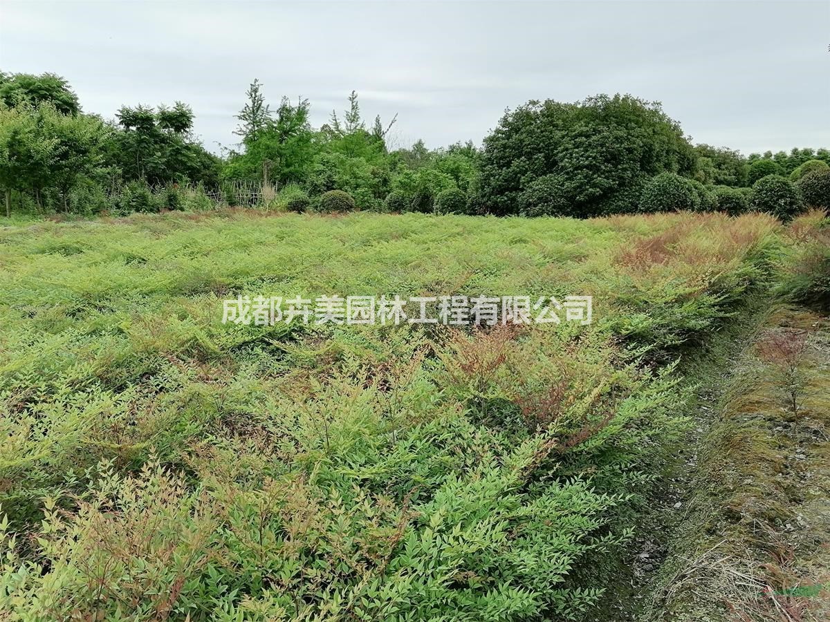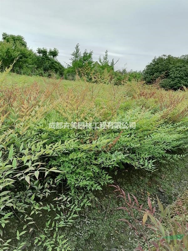 基地有高度为30-80公分冠幅为30-50公分的南天竹,欢迎选购。南天竺树干丛生,枝叶扶疏,清秀挺拔,秋冬时叶色变红,且红果累累,经久不落,为赏叶观果的优良树种。可植于山石旁、庭屋前或墙角阴处,也可丛植于林缘阴处与树下。