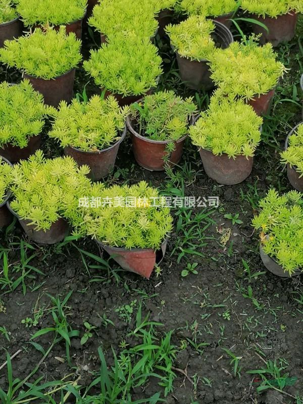 出售高度为15公分冠幅15公分佛甲草。佛甲草是优良的地被植物,它不仅生长快,扩展能力强,而且根系纵横交错,与土壤紧密结合,能防止表土被雨水冲刷,适宜用作护坡草。