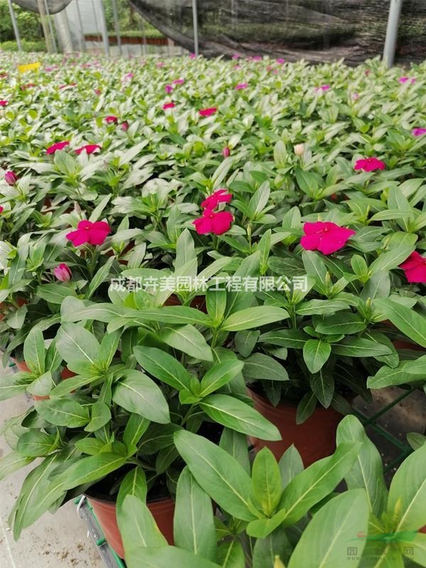 长春花属亚灌木,略有分枝,高达60厘米,有水液,全株无毛或仅有微毛;茎近方形,有条纹,灰绿色;节间长1~3.5厘米;叶膜质,倒卵状长圆形,长3~4厘米,宽1.5~2.5厘米,先端浑圆,有短尖头,基部广楔形至楔形,渐狭而成叶柄;叶脉在叶面扁平,在叶背略隆起,侧脉约8对。长春花性喜高温、高湿、耐半阴,不耐严寒,喜阳光,忌湿怕涝,原产于地中海沿岸、印度、热带美洲。