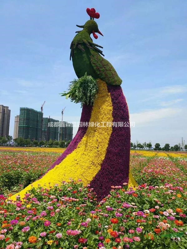 绿雕立体花坛包含某一种特定的主题思想。立体的植物雕塑与地上花坛形成多维度的立体花坛,生动传神的表达作品的设计理念和含义。