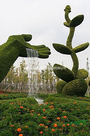 ?仿真绿雕造型优势:利用钢架为骨架模型,采用优质仿真材料进行制作,多年不变形不变色,成本低,可以塑造任何造型。题材宽广,可以非常好的和周围任何景色融为一体。