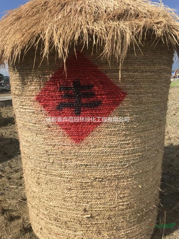 以结构件的基础上用稻草绳做缠绕编扎,用草绳包住整个结构件, 形成稻草工艺品的外在表象,期间用细铁丝或麻绳固定。编扎的细致、接 头的固定方式决定稻草工艺品的外观质量。 可定制城市雕塑摆件 园林草坪工艺品定制,可以定制各种稻草的造型