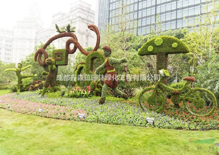 景界园艺绿雕产品适用于地产小区,商业环境,旅游地产,城市景观。 专业从事园林绿化造景,制造立体花坛,绿雕,绿雕,城市绿雕,景观绿雕,立体绿雕,五色草造型,稻草人雕塑等,园艺植物造型,彩灯,园林景观设计,园林绿化工程设计与施工。只有您想不到,没有做不到哦