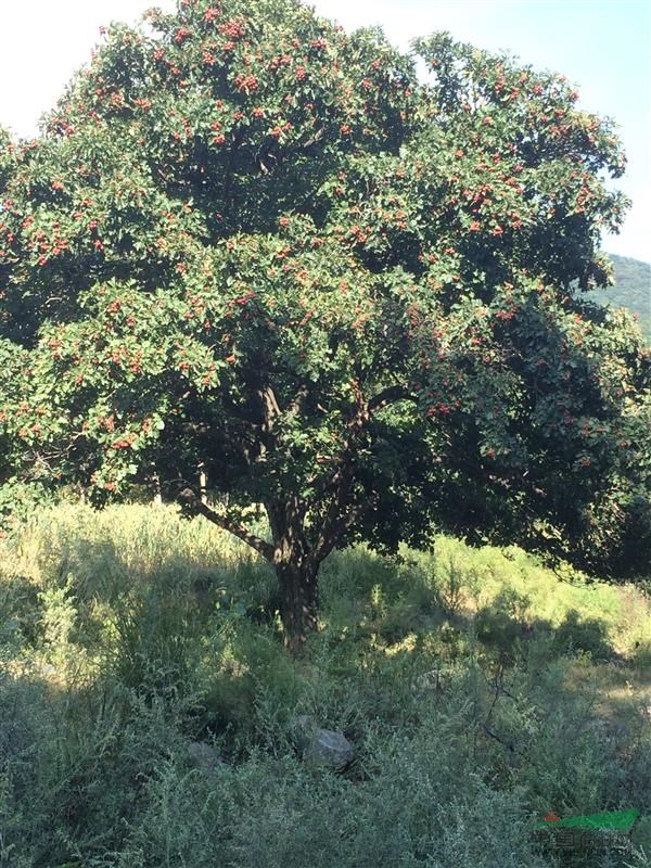 山楂树;红果、棠棣、绿梨;叶片主要观赏颜色、绿色喜阳适宜栽种纬度评估:产地分布;山楂主产山东、河南、山西、河北、辽宁。